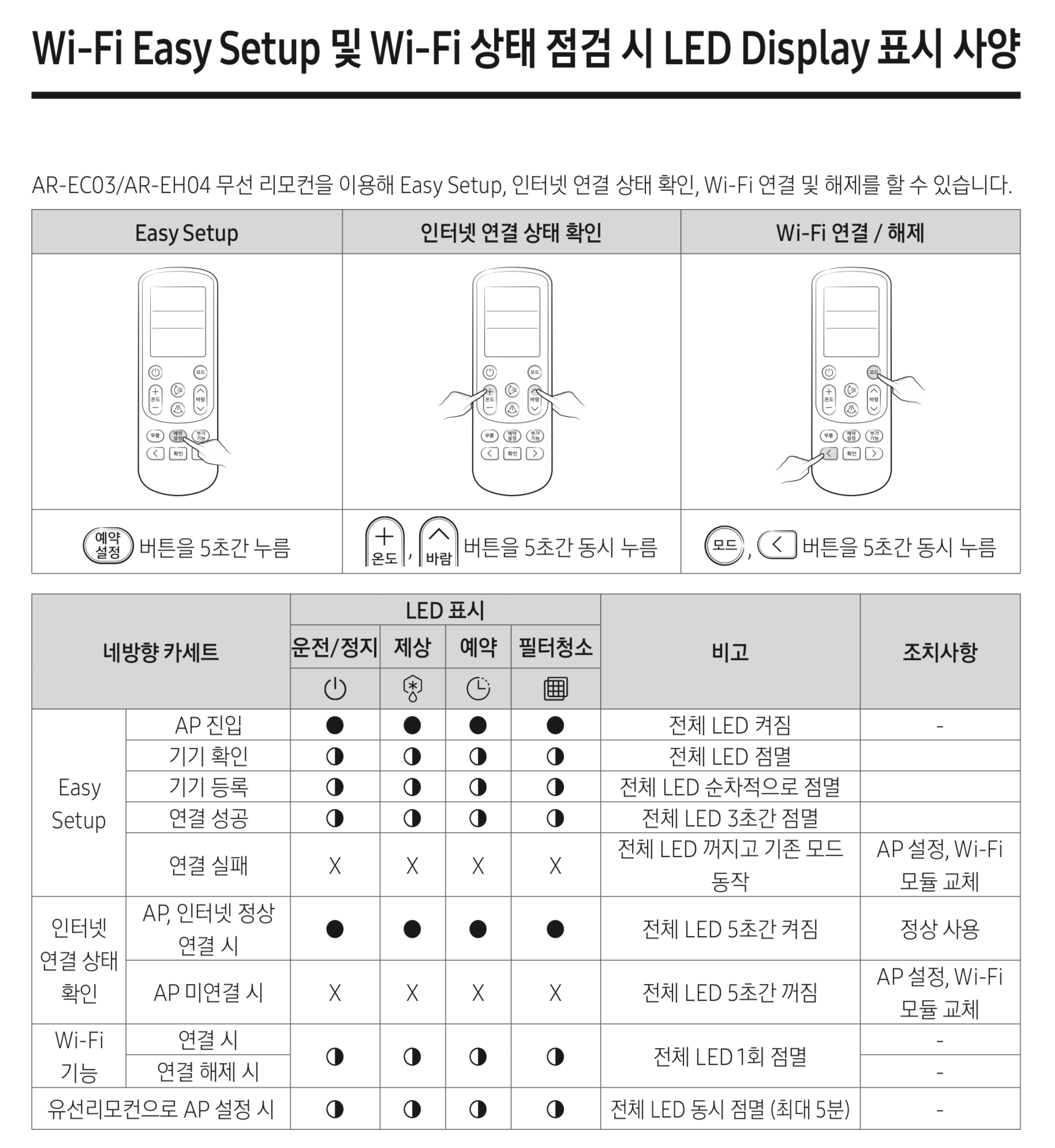 연결 과정에서 리모컨을 조작하는 과정이 있는데, 제가 가지고 있는 리모컨들(AR-EH00, AWR-WE13N)로는 안 되고 신형 무선리모컨이나 LCD 유선리모컨만 사용이 가능한 것 같아, 무풍 기능이 있는 무선 리모컨(AR-EH03)도 같이 구매했습니다.
