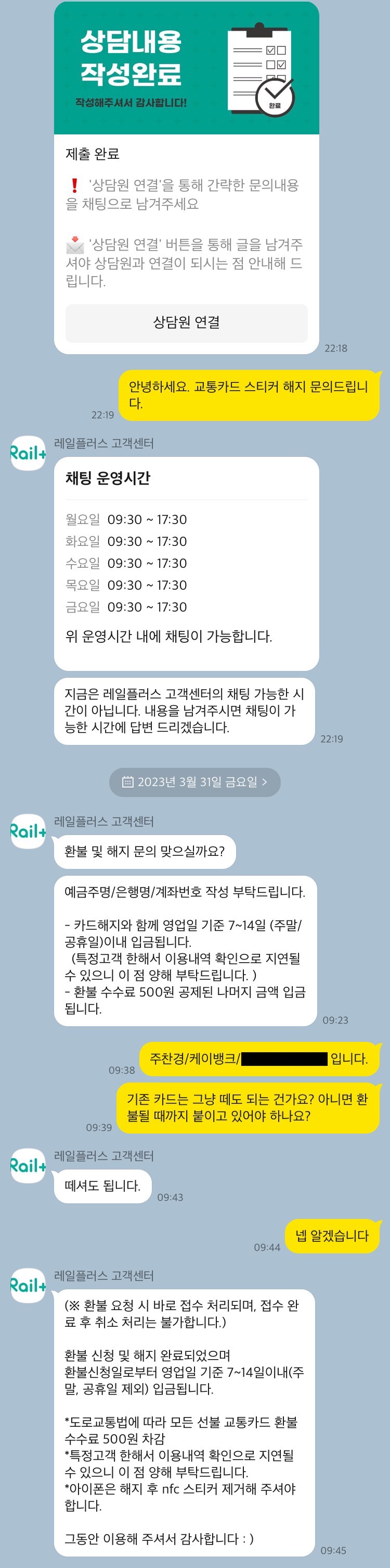 환불 신청 후 기존 카드는 그냥 떼도 된다고 합니다. 다른 교통카드와 동일하게 환불수수료 500원 있습니다.