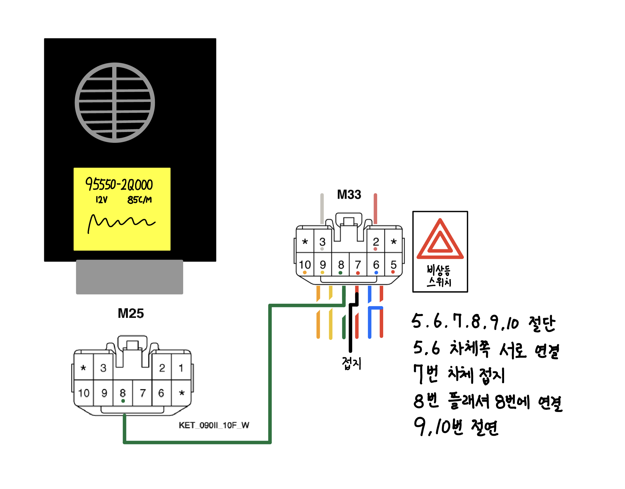 해당 작업까지 하게 되면 리모컨 작동 및 도난 경보 시 비상등 점멸을 ICM 릴레이가 아닌 플래셔 모듈에서 제어하게 되어 충돌이 발생하지 않습니다.