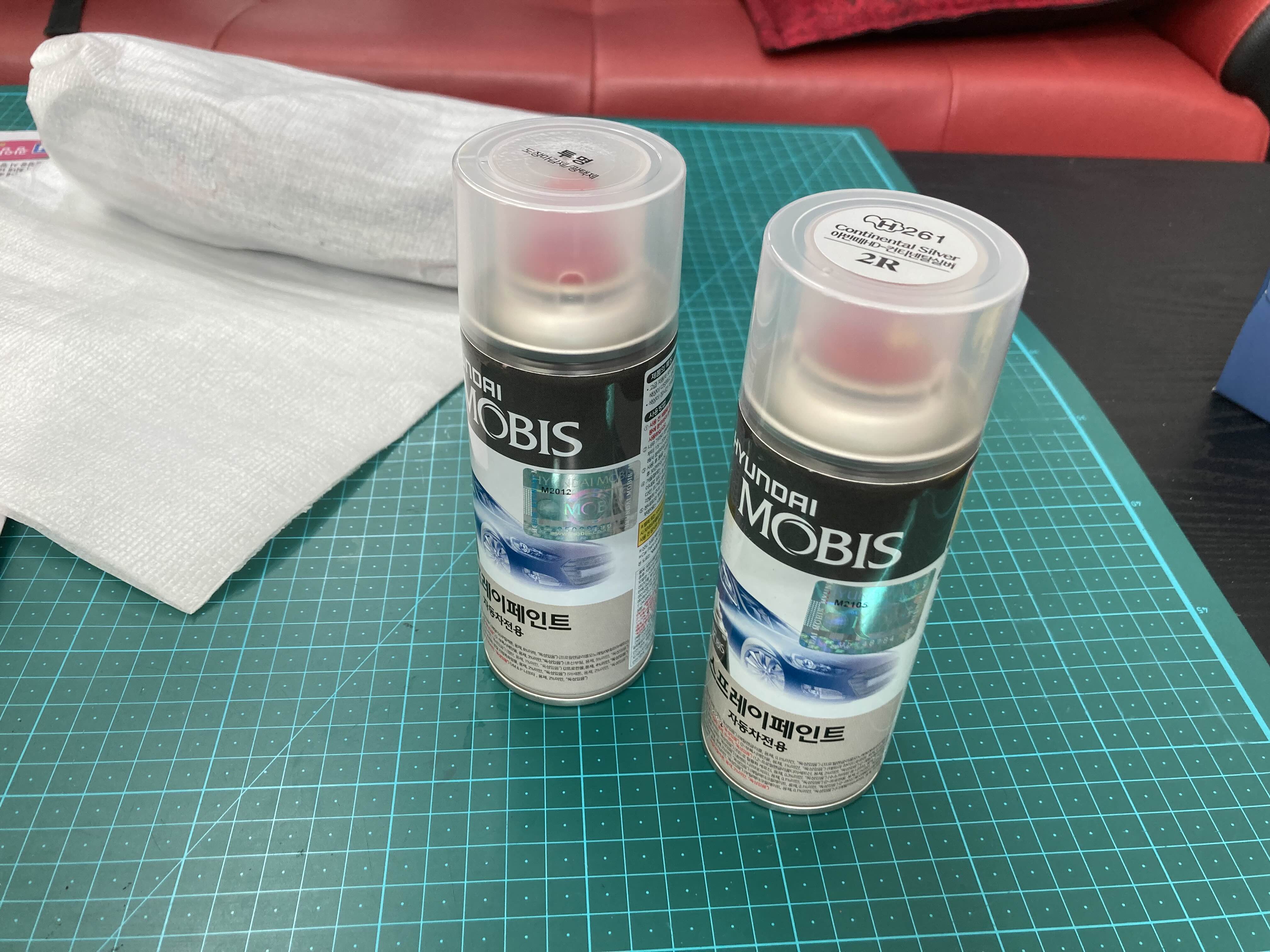 차가 단종된 지 오래되어 부품들이 죄다 미도색.. 자가도색 후 장착했습니다.