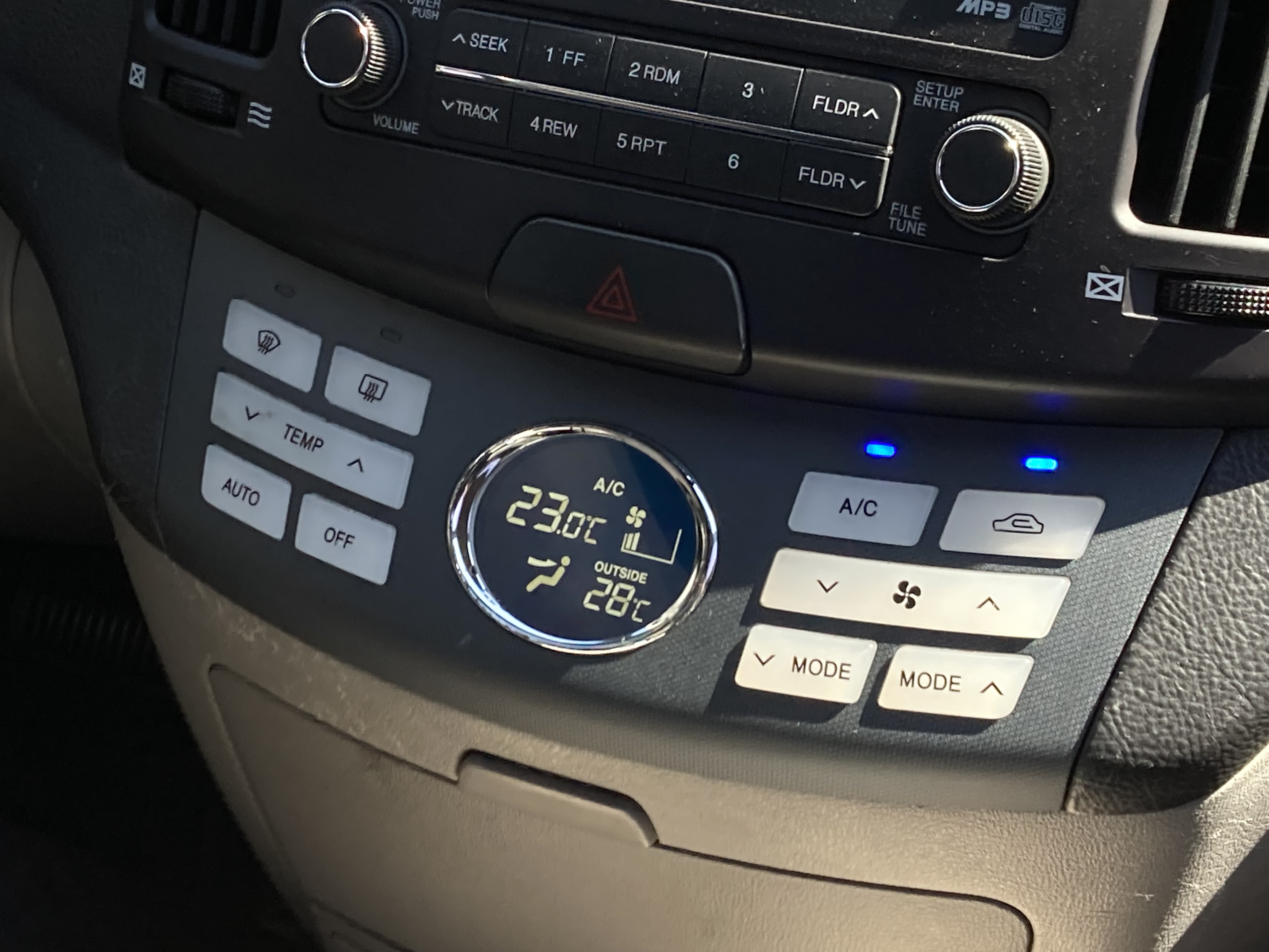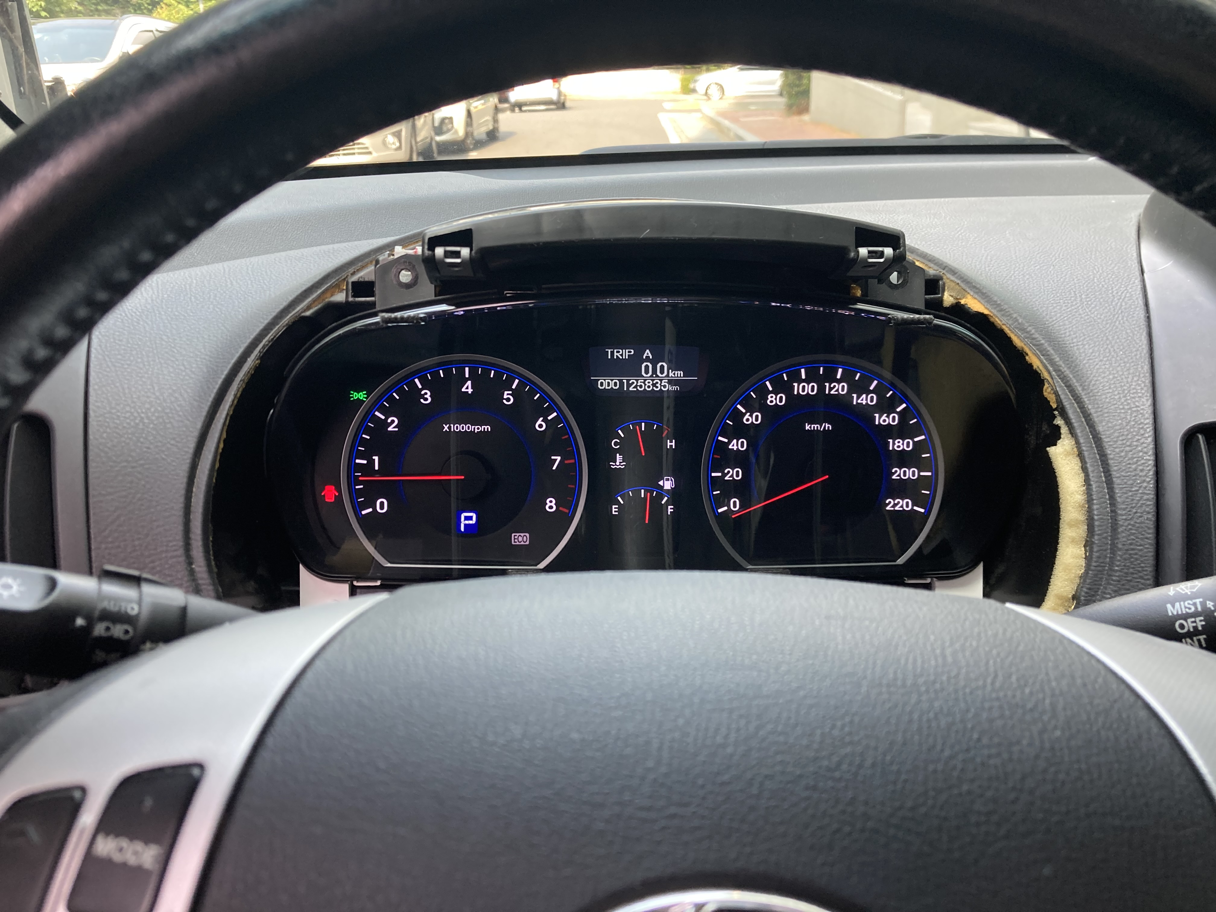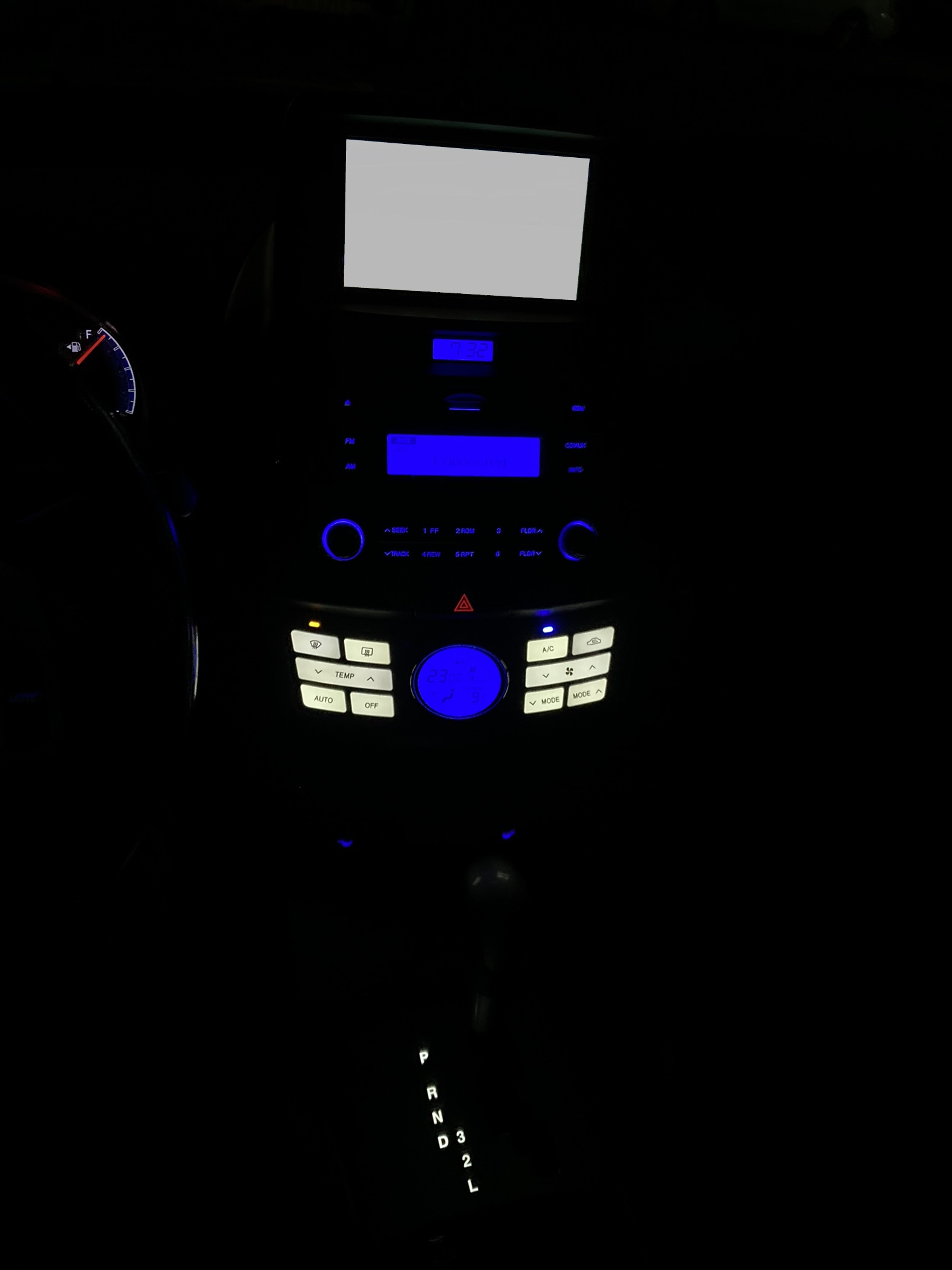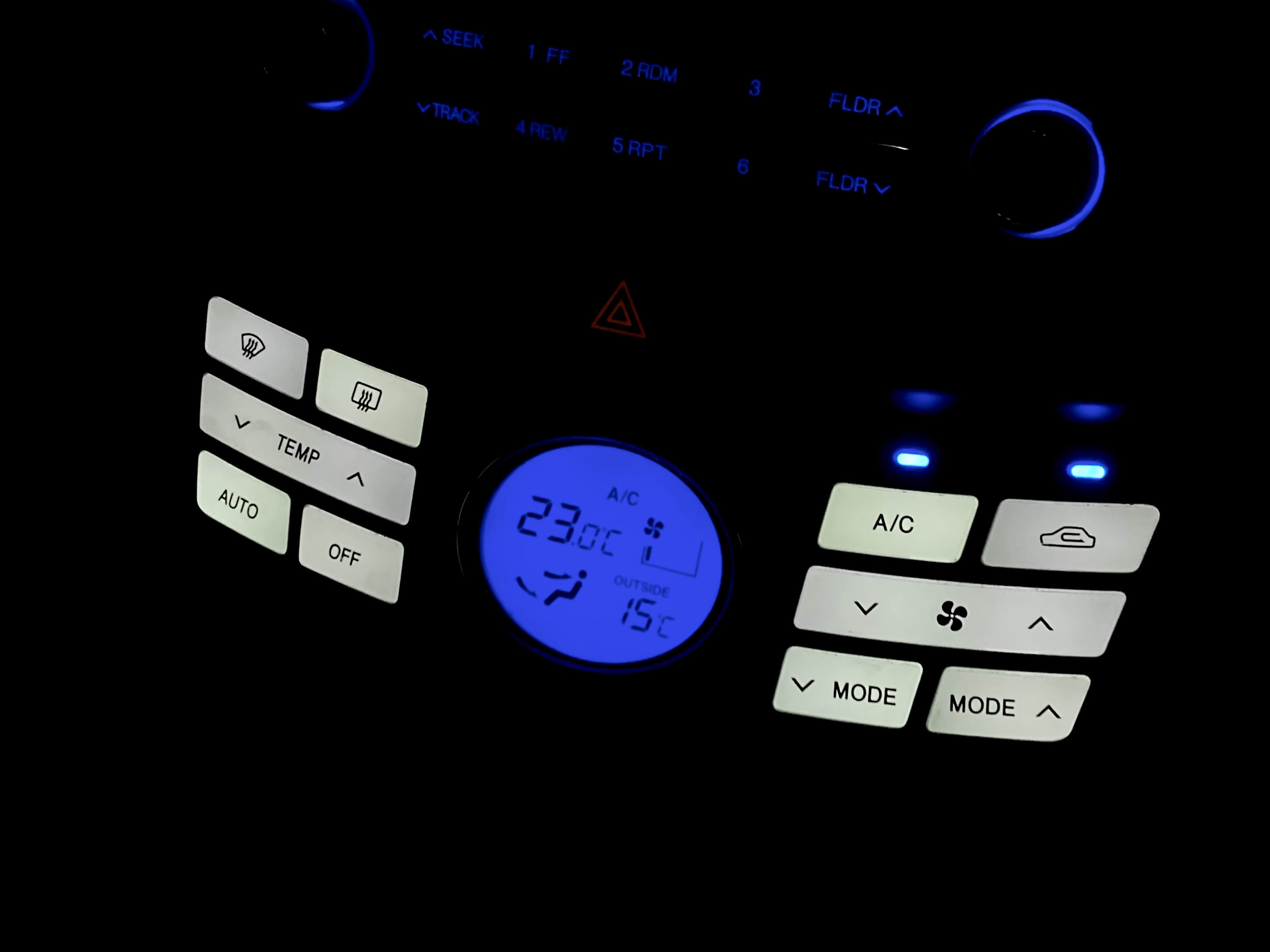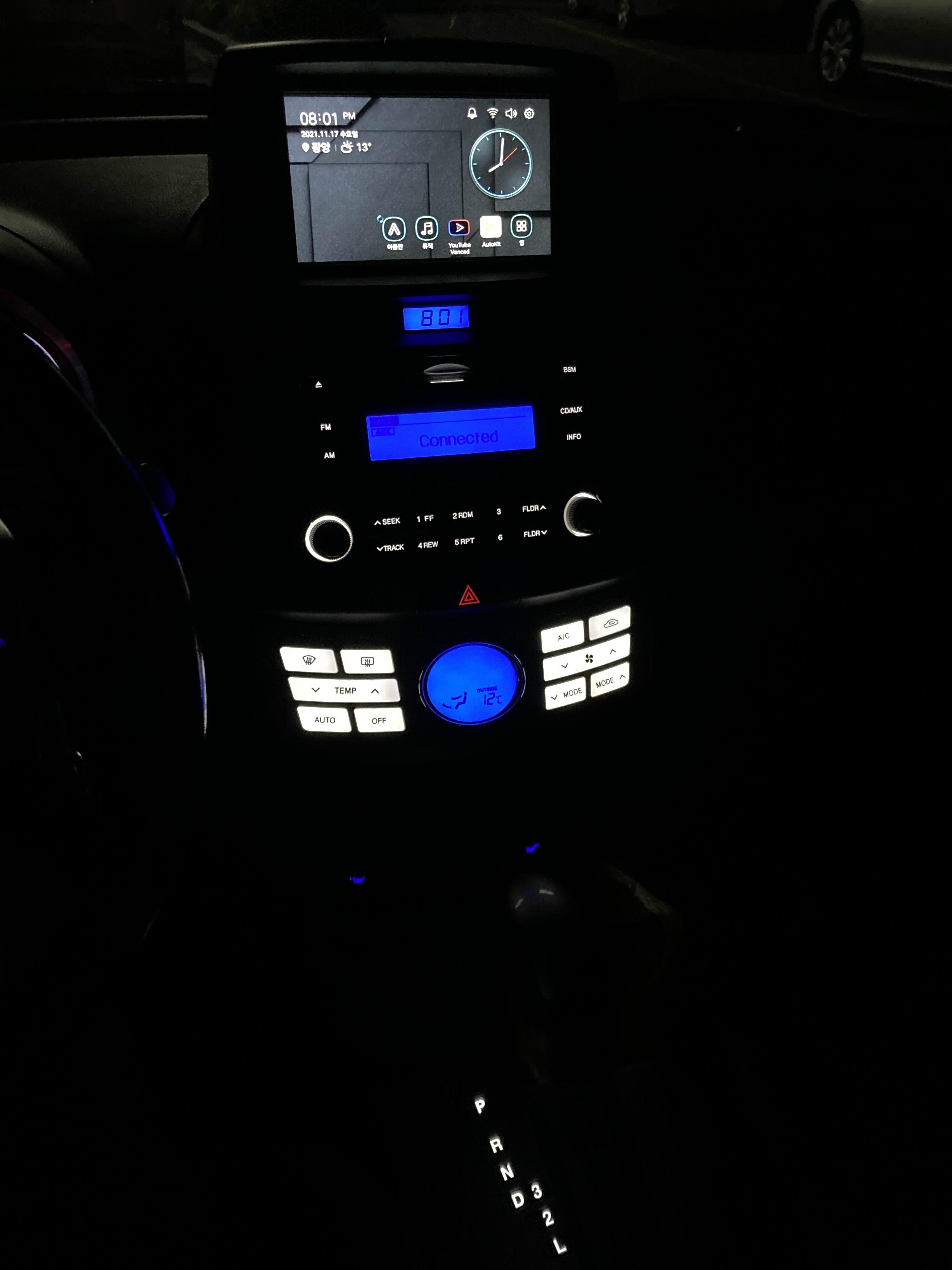 공조기 버튼과 기어패널은 흰색으로, A/C와 내기순환 표시등은 파란색으로 변경했습니다.