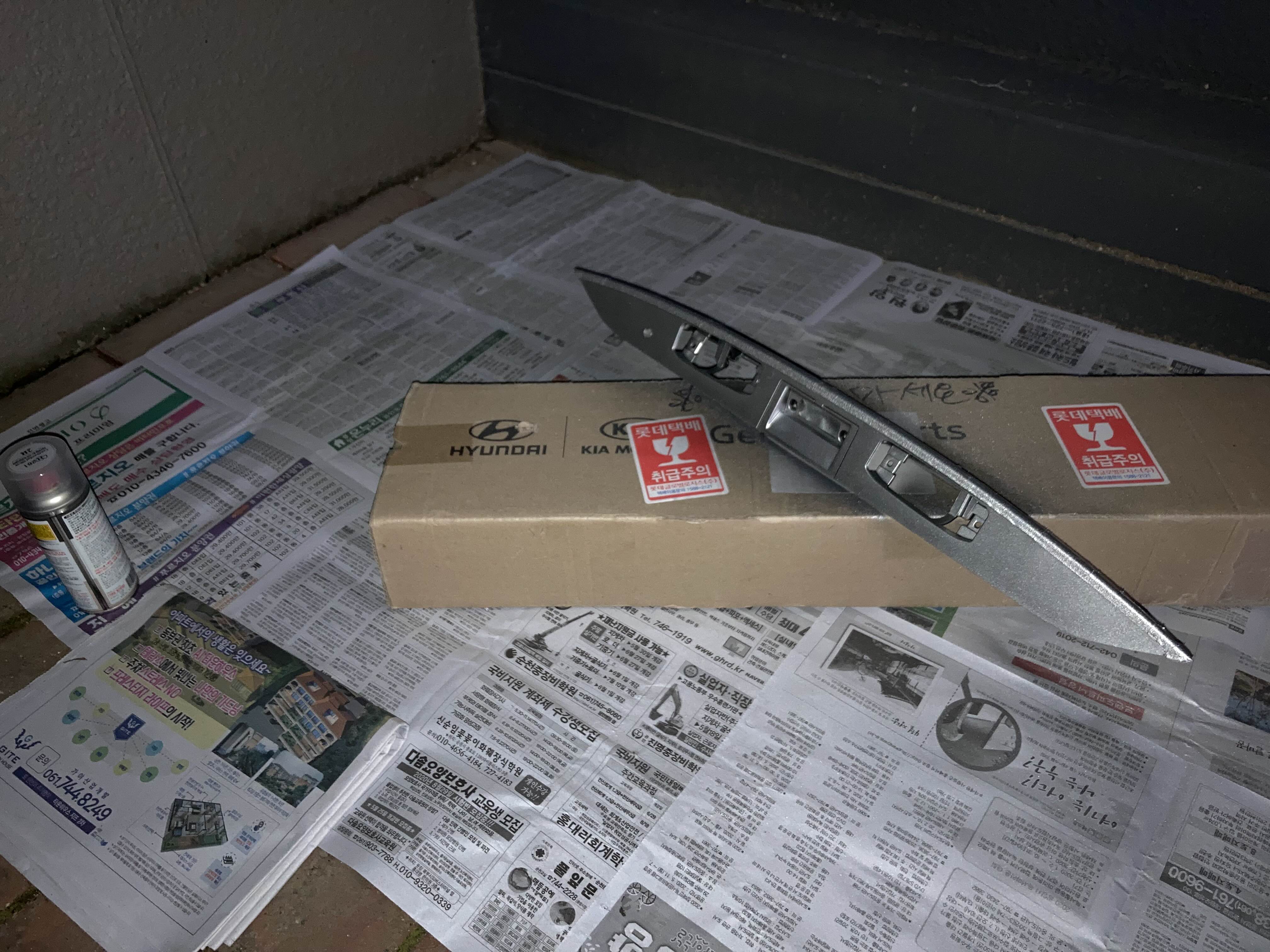 차가 단종된 지 오래되어 부품들이 죄다 미도색.. 자가도색 후 장착했습니다.