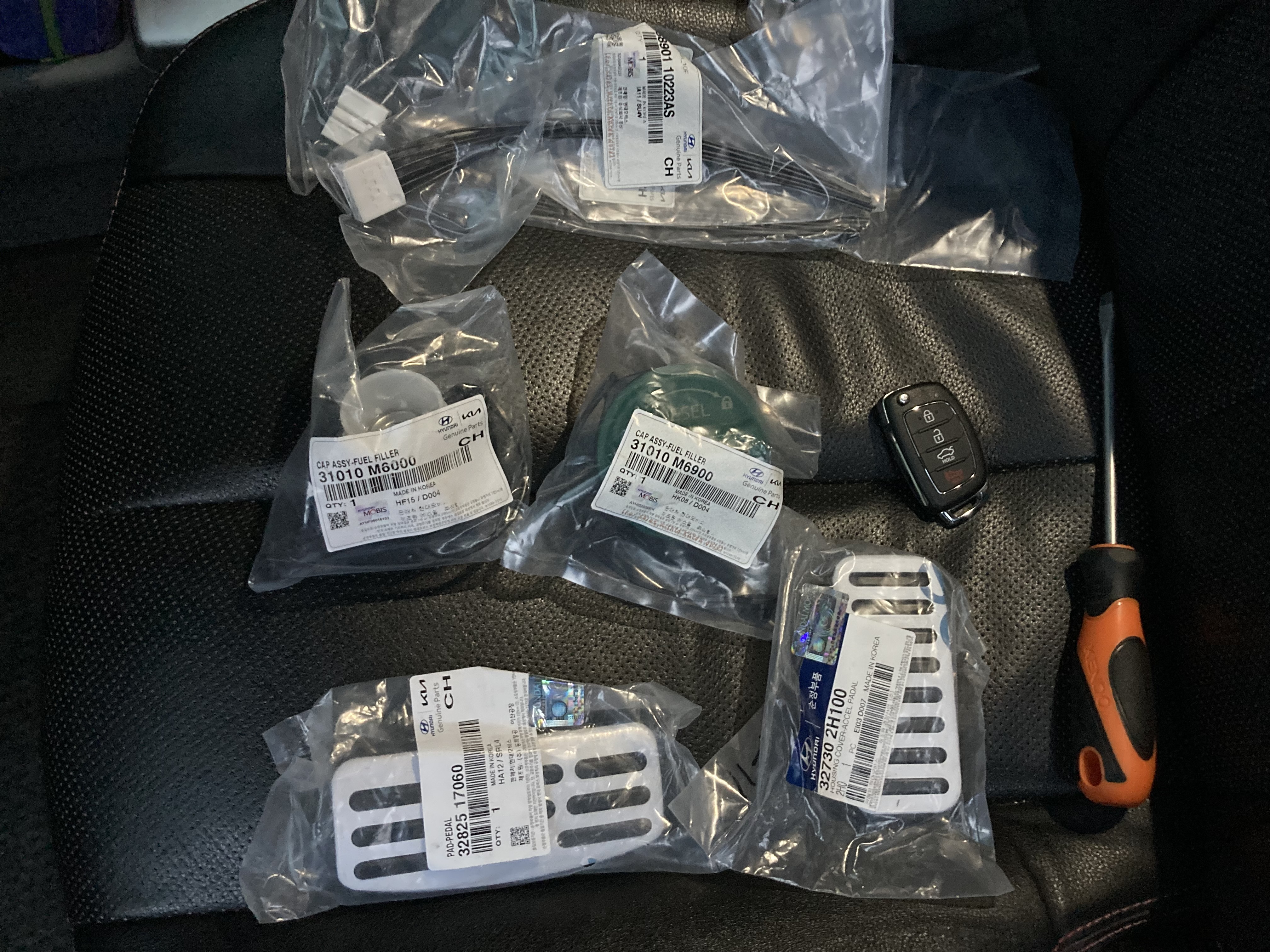 이번 DIY는 알로이 페달과 원터치 주유캡입니다. 이전부터 관심있던 DIY였는데 이제서야 하게 되었네요... 위에서부터 비상등 스위치 & 플래셔 모듈 커넥터, 셀토스 가솔린 주유캡, 셀토스 디젤 주