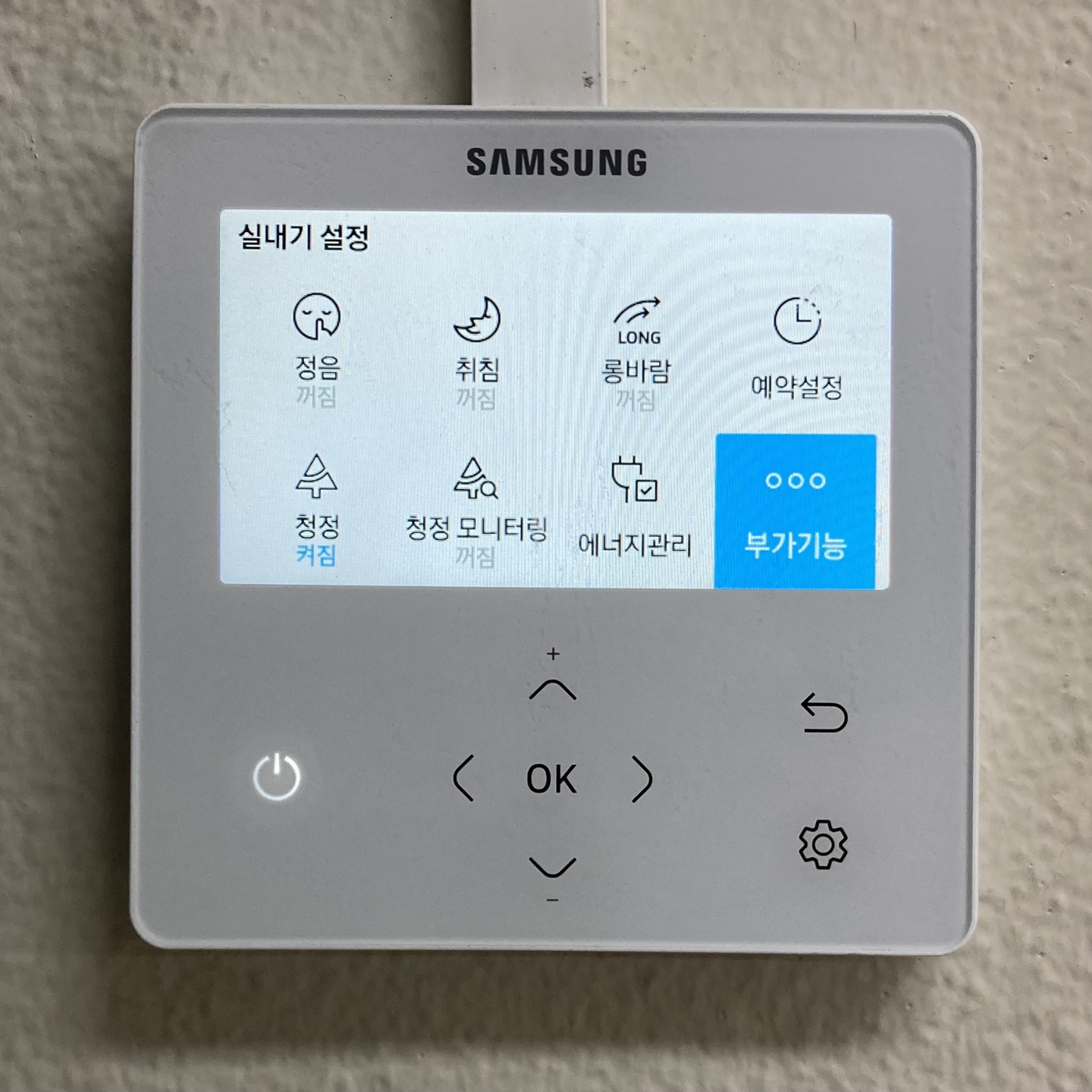 옵션 설정 후 전원 키를 2회 이상 눌러 실내기에 입력합니다.