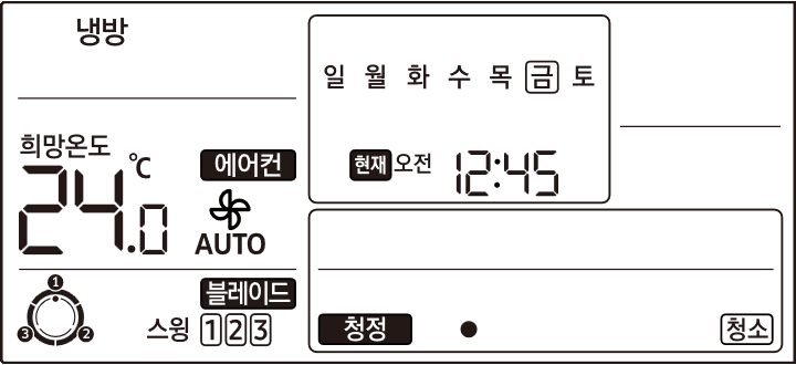 설정 저장 후 일정 시간(보통 몇 초 이내)이 자나면 “띵” 소리와 함께 리모컨과 실내기 전원이 리셋됩니다.