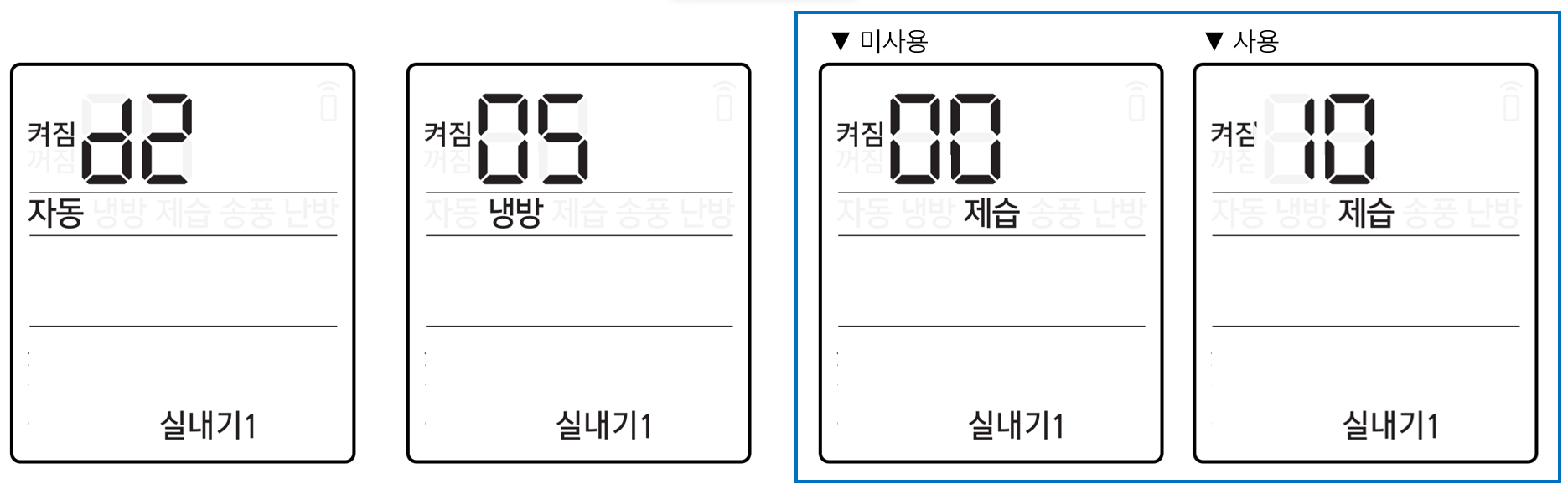 구통신: 설정 저장 후 “디리리링” 에러음과 함께 실내기의 모든 표시등이 3~5회 정도 점멸하다가 “띵” 소리 나며 복구됩니다.