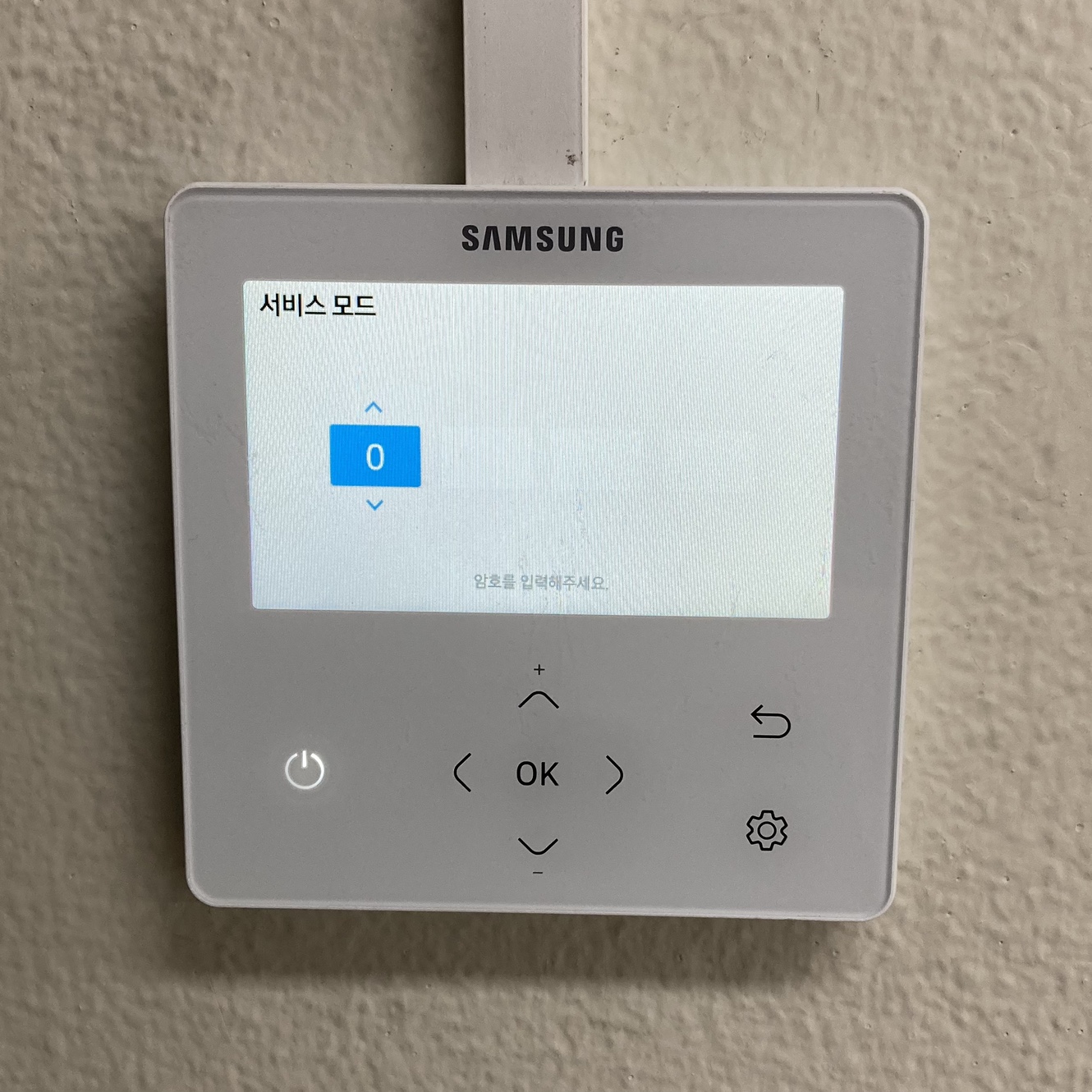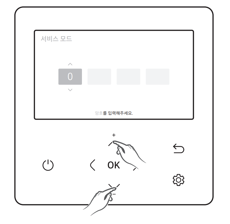② 서비스 모드 암호 입력 후 OK 버튼을 눌러주세요. 암호는 설치 안내서에 기재되어 있습니다.