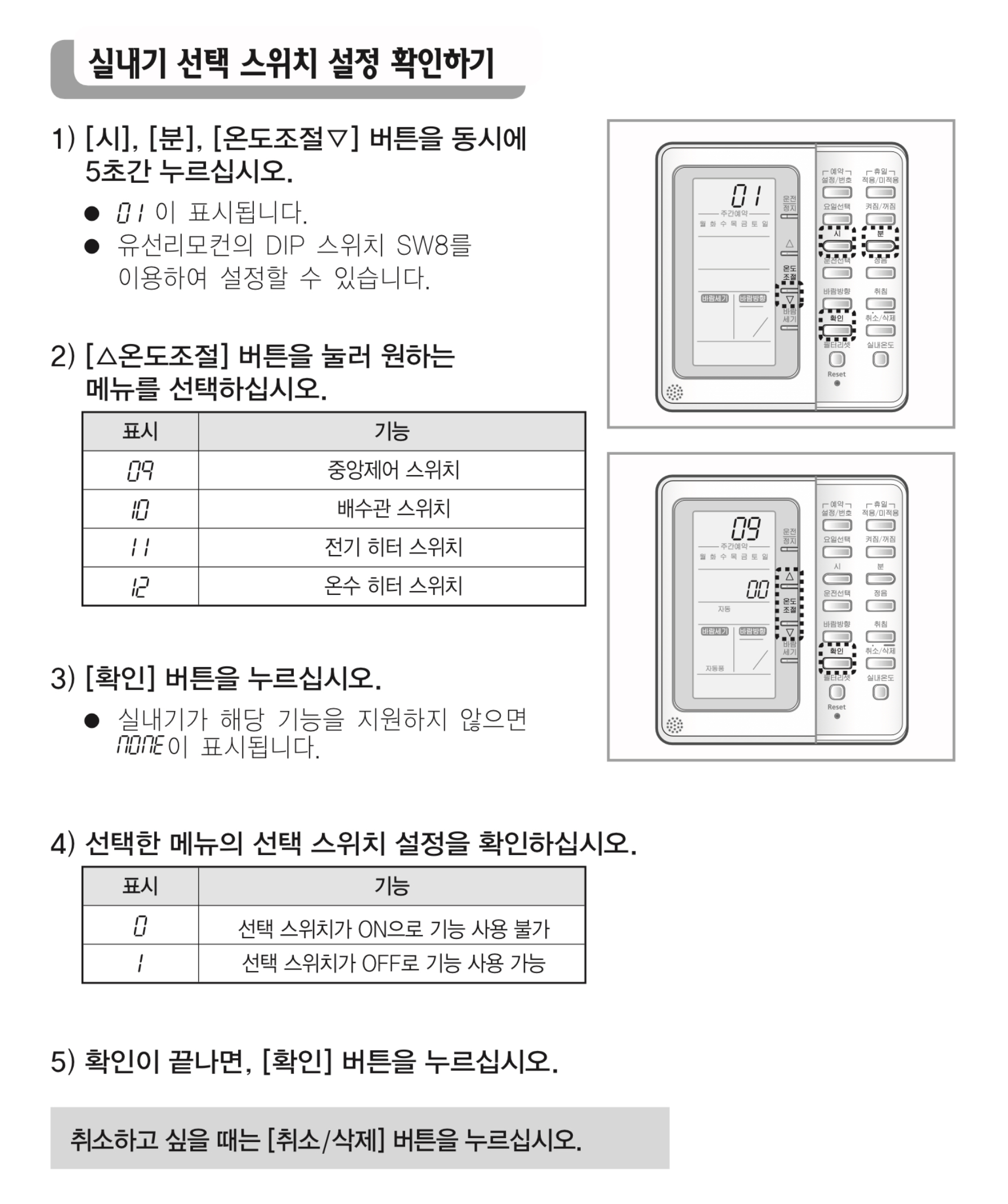 만약 NONE이 뜬다면 해당 실내기는 리모컨을 통한 옵션 입력이 불가능합니다.