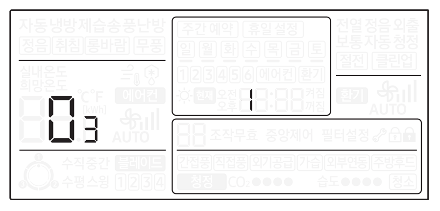 리모컨 화면에 00이 표시되면 정상적으로 진입한 것입니다.