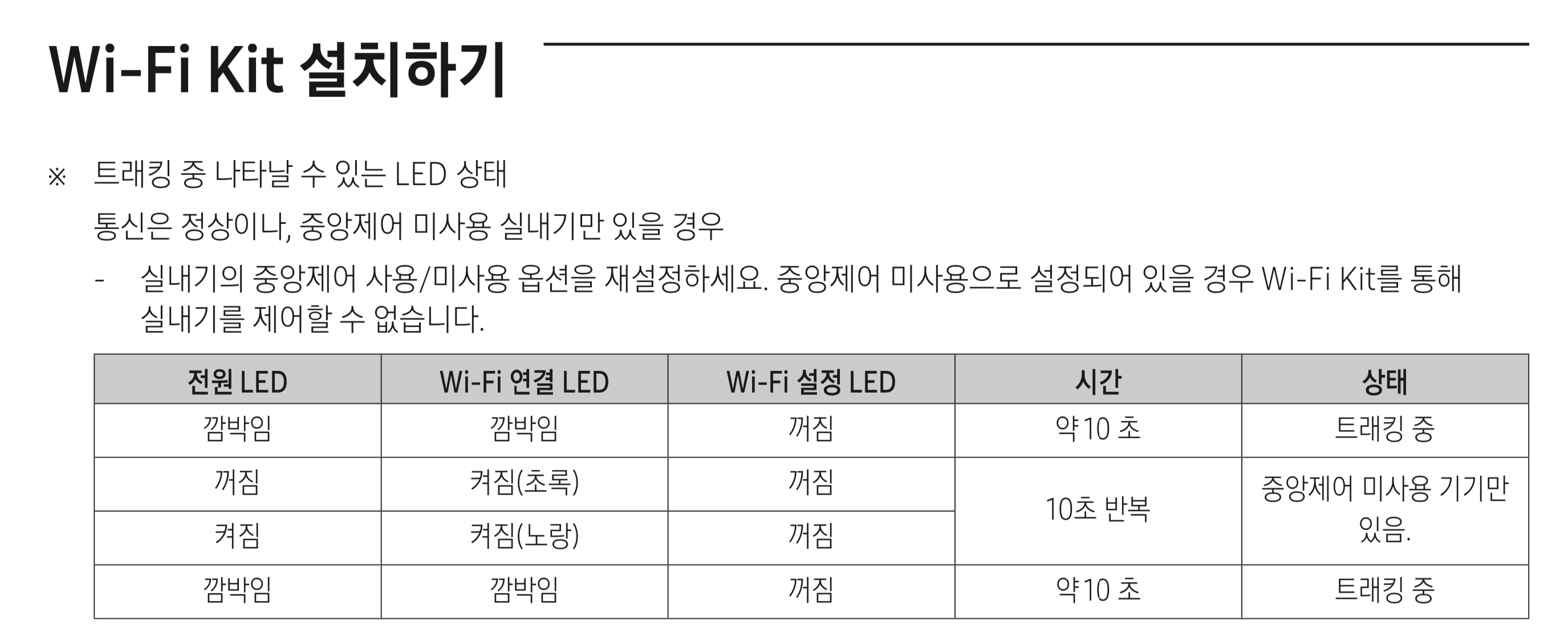 멀티형(모델명이 AM으로 시작) 에어컨, 주거용 멀티(모델명이 AJ로 시작) 에어컨은 기본적으로 중앙제어 옵션이 활성화되어 있지만, 중소건물 등에서 주로 사용하는 싱글형(모델명이 AC로 시작) 에어컨은 기본적으로 중앙제어가 비활성화되어 있어 중앙제어기나 Wi-Fi Kit을 설치 및 사용하려면 중앙제어 옵션을 변경해주어야 합니다.
