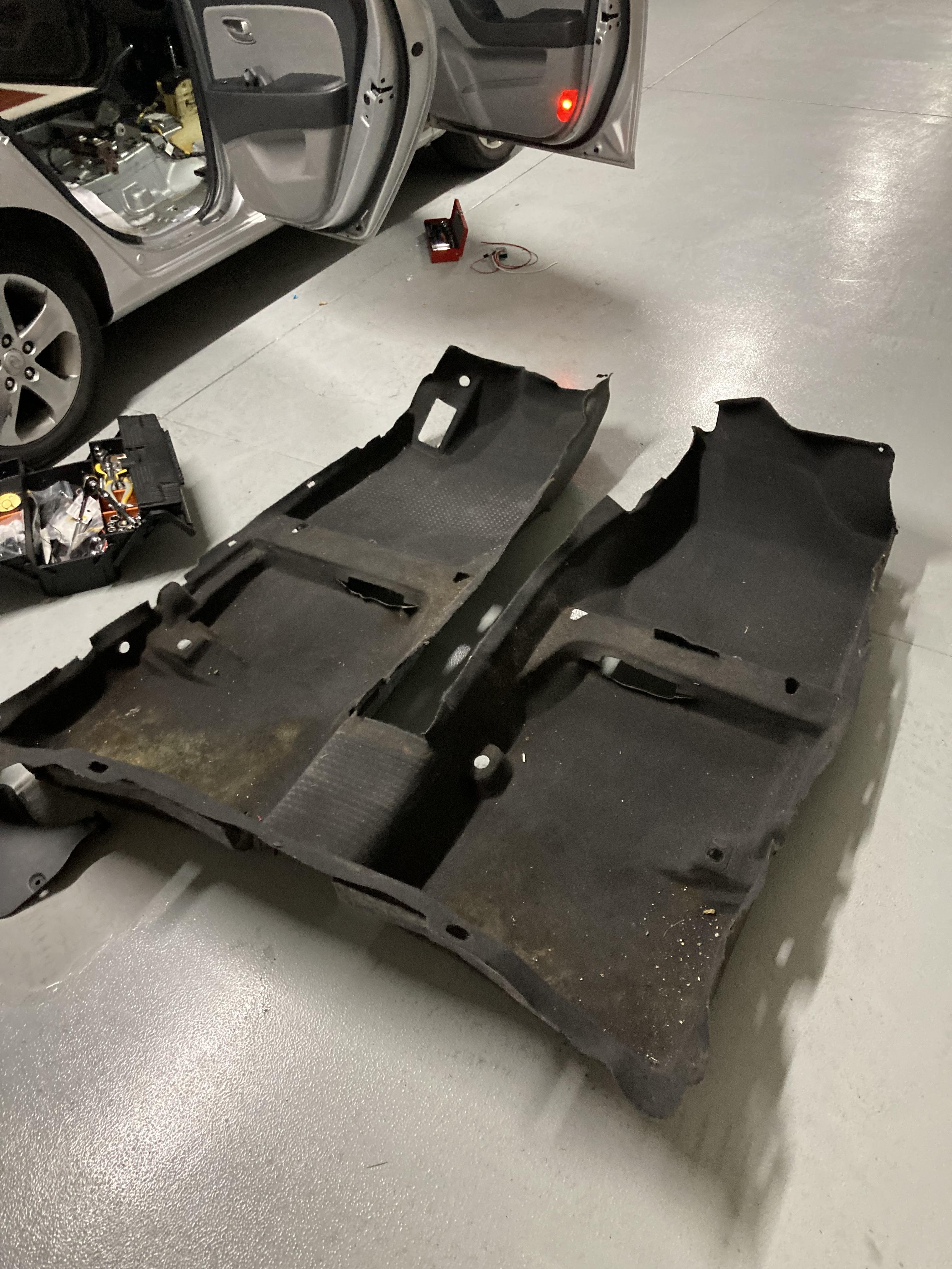 카페트를 잘 펴서 센터콘솔도 달고, 안전벨트 볼트도 다시 조이고, 탈거했던 나머지 내장재도 전부 조립하면 끝입니다.